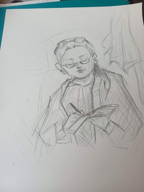 “7. juunil jooksin pael kaelas Tallinnas Viljandi rongile, mis kohe liikuma hakkas, kui endale sobiva koha leidsin. Küsisin samas vahes istuvalt neiult, et kas koht on vaba, naeratasime üksteisele ja süvenesime mõlemad oma kõrvaklappidesse ning kritseldamisse. Minul jaapani mosaiik, temal joonistusplokk. Piletimüüjaga suhtlemishetkel reetis imeõrn aktsent, et eesti keel pole tema emakeel. Ta joonistas terve tee. Mõne aja pärast palus tema vabandust ja küsis, et kas tohib mulle selle pildi kinkida. Ma ei tea ta nime, kuid olen talle lõputult tänulik, sest ta kinkis mulle tunduvalt enamat kui see hetketabamus. Sain veel kord kinnitust, et inimesed on ilusad ja head ning noored on ägedad!” – Veronika Raudsepp Linnupuu (kirjanduse õpetaja)